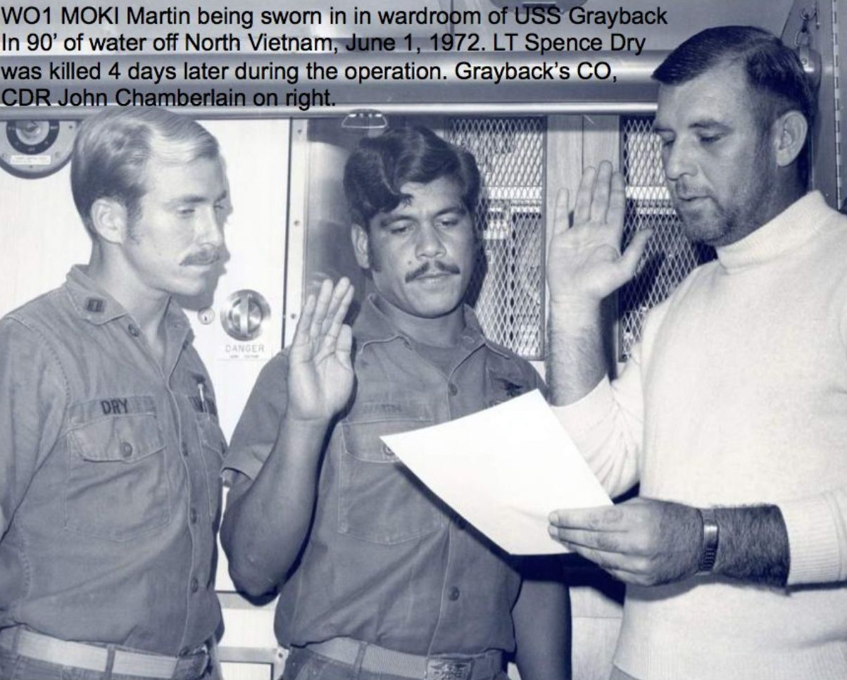 Lt Dry was killed on impact and the other three members of team were injured and swept to the south with the current. Warrant Officer Moki Martin, second in command, kept the three injured men and the body of Lt Dry together until they were once again rescued by helo at dawn. Grayback stayed on station and in position to rescue the POWs but the SDVs were not used again.